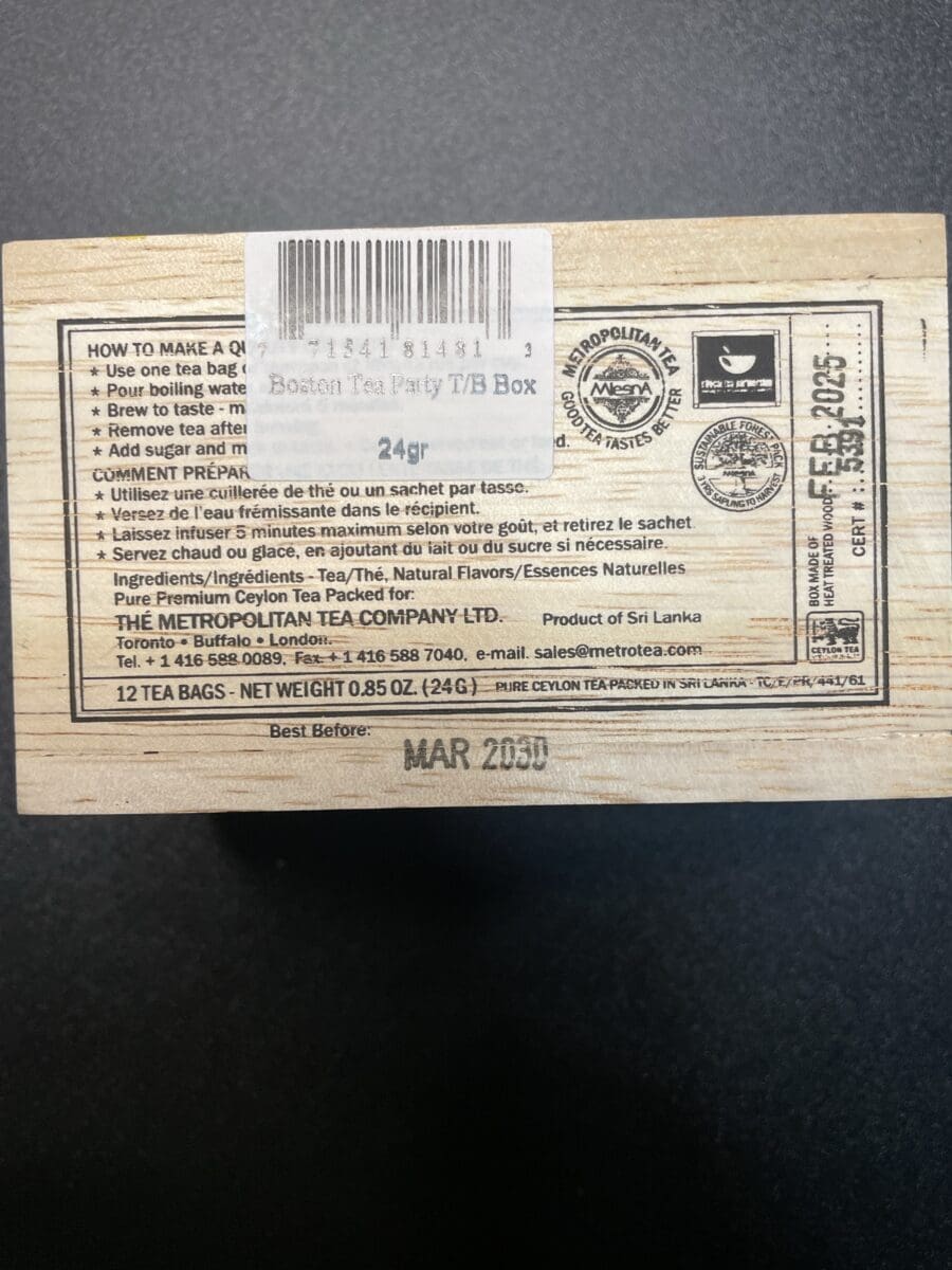 This revolutionary breakfast tea is an enduring symbol of the American spirit. Earl Grey in flavor, this mix is a blend of black & green tea with natural flavors. Packed by our neighbors in the north (Canada), the tea is from India/Kenya/China.