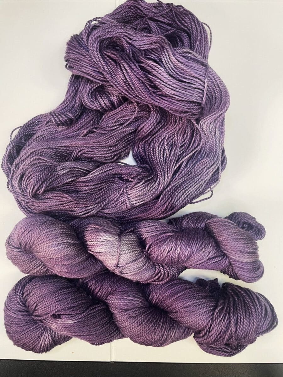 | Variegated Lavender 100% Pima Cotton DK Yarn | Purple Colorway: Variegated Lavender. Length: 328 yds / 300 meters/100g Variegated Lavender 100% Puma Cotton DK is our first VEGAN yarn base. Spun from 100% organic Pima cotton, this yarn is a soft option for warm-weather knits. At a utilitarian DK weight, this yarn is as easy to wear as it is to care for. You’ll love making tops, sweaters and baby gear with Blue Thistle 100% Pima Cotton yarn. Perfect for knitting or crocheting projects. Care Instructions: Hand wash in cold water with a gentle detergent made specifically for washing wool and other fine fibers or a PH-neutral, dye-free detergent. Lay flat to dry. Length: 437 yds / 400 meters. While our team hand-dyes each skein with the utmost care, natural dyes results can vary based on plant materials and fibers. Please be aware that variations in color and appearance may vary from the display image. Naturally dyed yarns can blend color the first few washings, so please wash your yarn before use. | $30.00 | ||