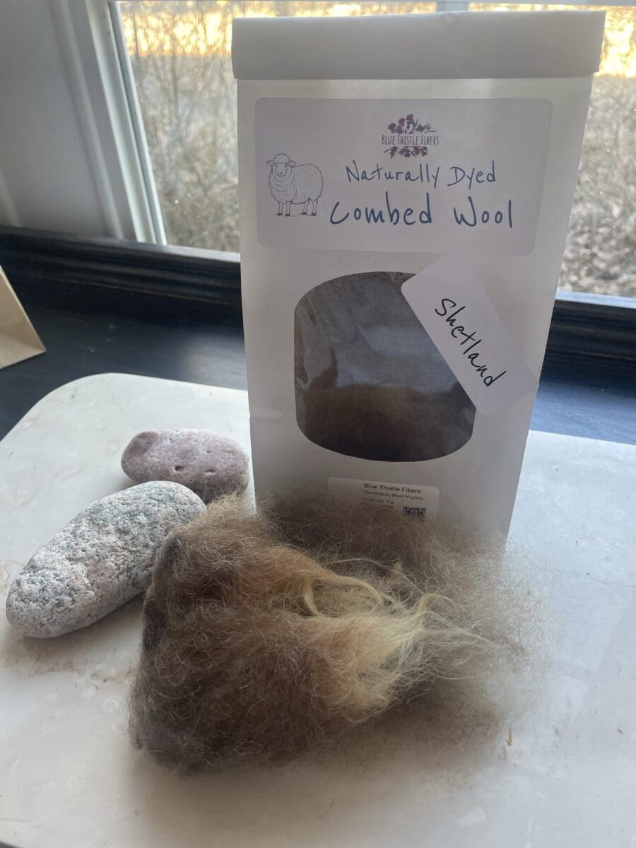 Blue Thistle Fibers’ hand-washed Shetland Locks are perfect for combing, spinning, or felting for your craft projects. This undyed product has been washed and scoured in hot water but left unprocessed. There may be neps, felted sections or minor VM. Wool is sourced from our network of farms that ethically and sustainably raise heritage breed sheep.