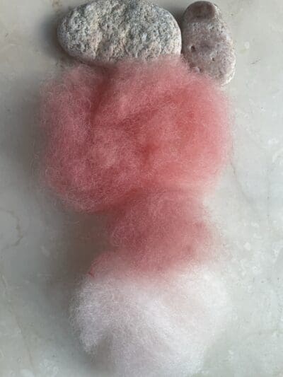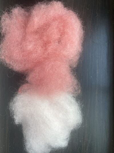 Multi Colorway: Red & White Cotswold Hand-Carded Roving are perfect for felting, spinning, and other crafts—net weight: 5 grams. Staple length – Mixed between 1 inch and 2 inches. There may be second cuts, neps, felted sections or minor VM.