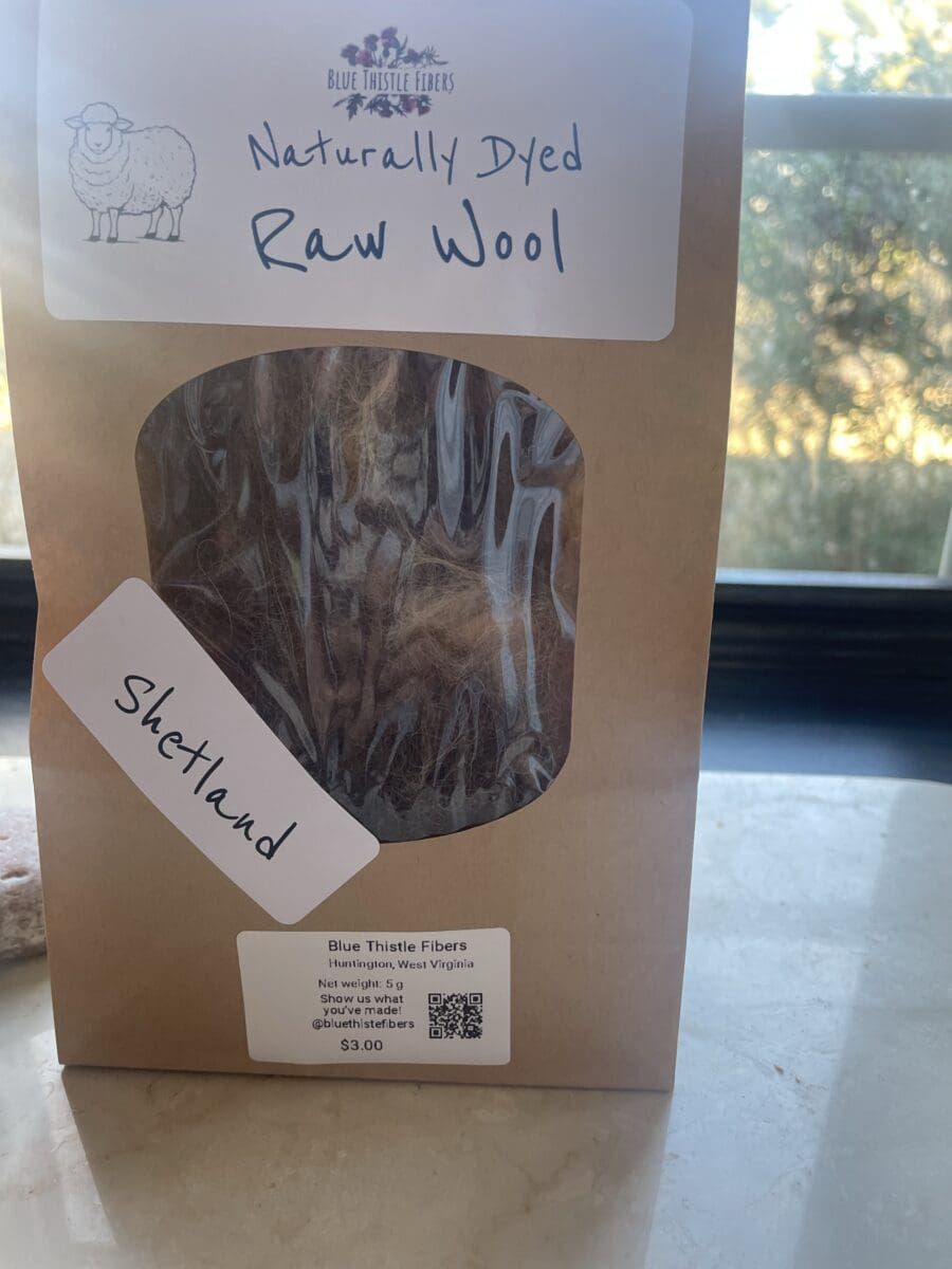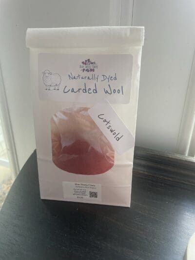 Blue Thistle Fibers’ mixed staple length hand-carded Cotswold roving are perfect for combing, spinning, or felting for your craft projects where you want chemical free, natural regenerative fiber. This naturally dyed product has been washed and scoured in hot water. Fleece products are sourced from our network of farms that ethically and sustainably raise heritage breed sheep.