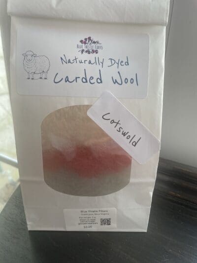 Blue Thistle Fibers’ mixed staple length hand-carded Cotswold roving are perfect for combing, spinning, or felting for your craft projects where you want chemical free, natural regenerative fiber. This naturally dyed product has been washed and scoured in hot water. Fleece products are sourced from our network of farms that ethically and sustainably raise heritage breed sheep.